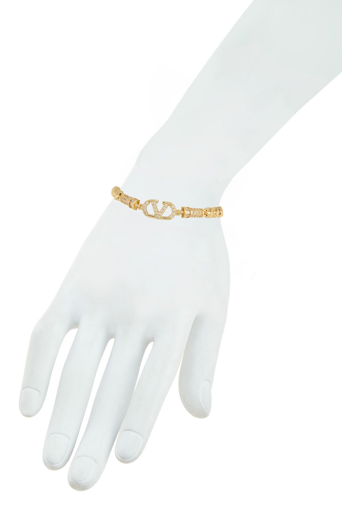 Geometric Pyramid & Rhinestone Logo Bracelet 7.5"(L)